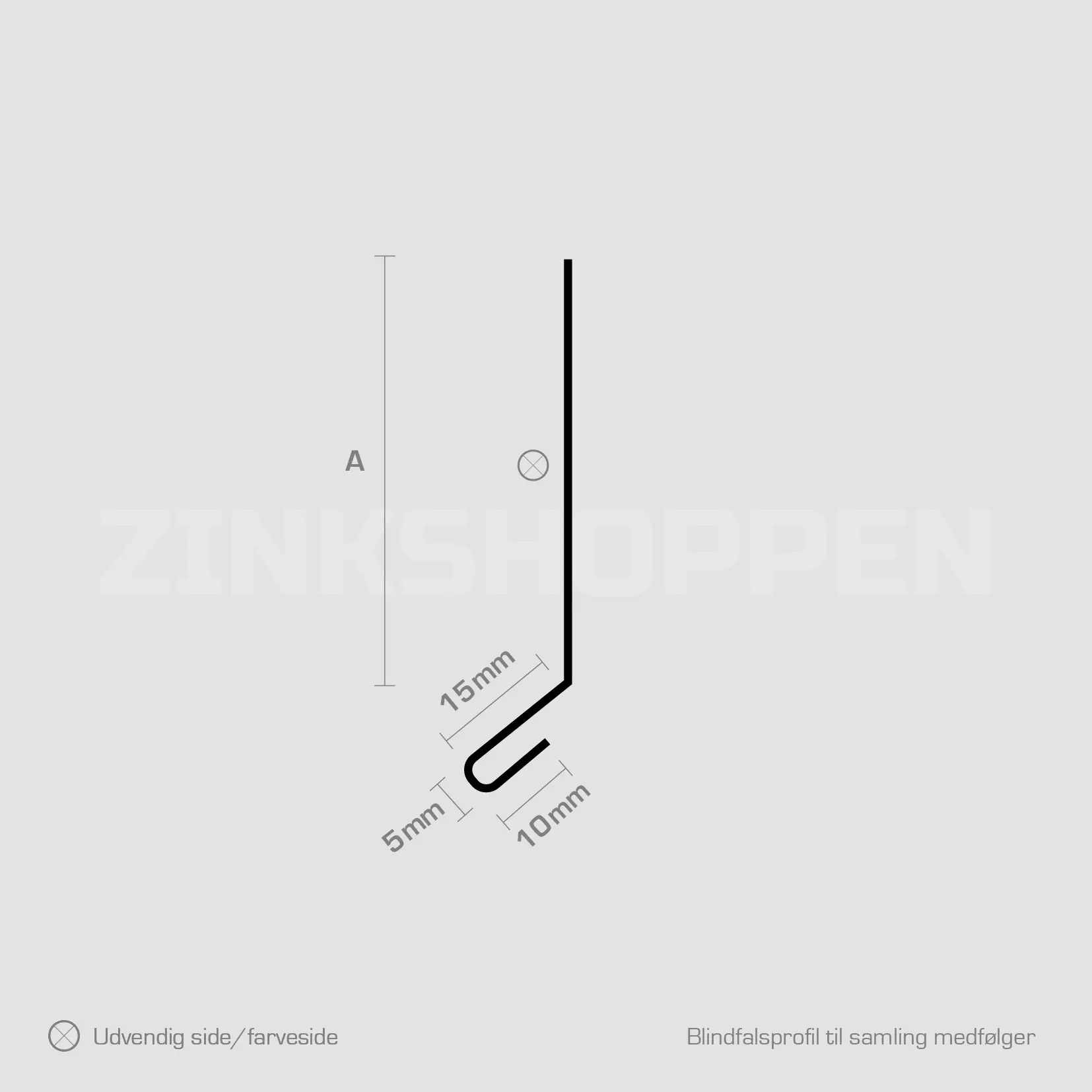 Sternbeklædning Type 8 er en funktionel og moderne løsning til inddækning af sternbrædder. Profilen har en lodret afslutning med et 15 mm knæk og drypnæse, der effektivt leder vand væk fra bygningen og sikrer en diskret og tæt tilslutning.