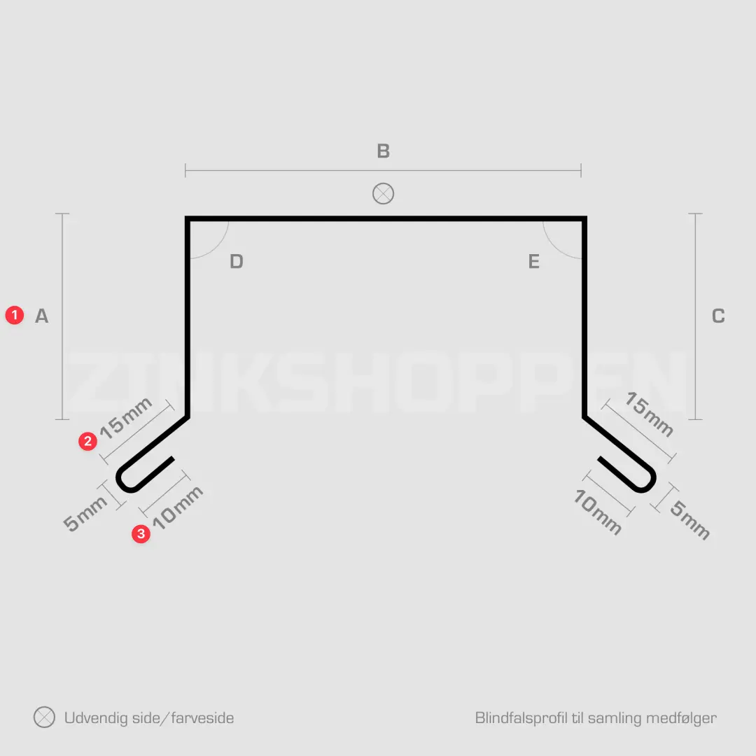 Hos Zinkshoppen fremstiller og lodder vi endebunden direkte på profilen, når du bestiller. Du modtager altså en profil, hvor endebunden allerede er monteret og klar til brug – du skal blot montere profilen på muren.