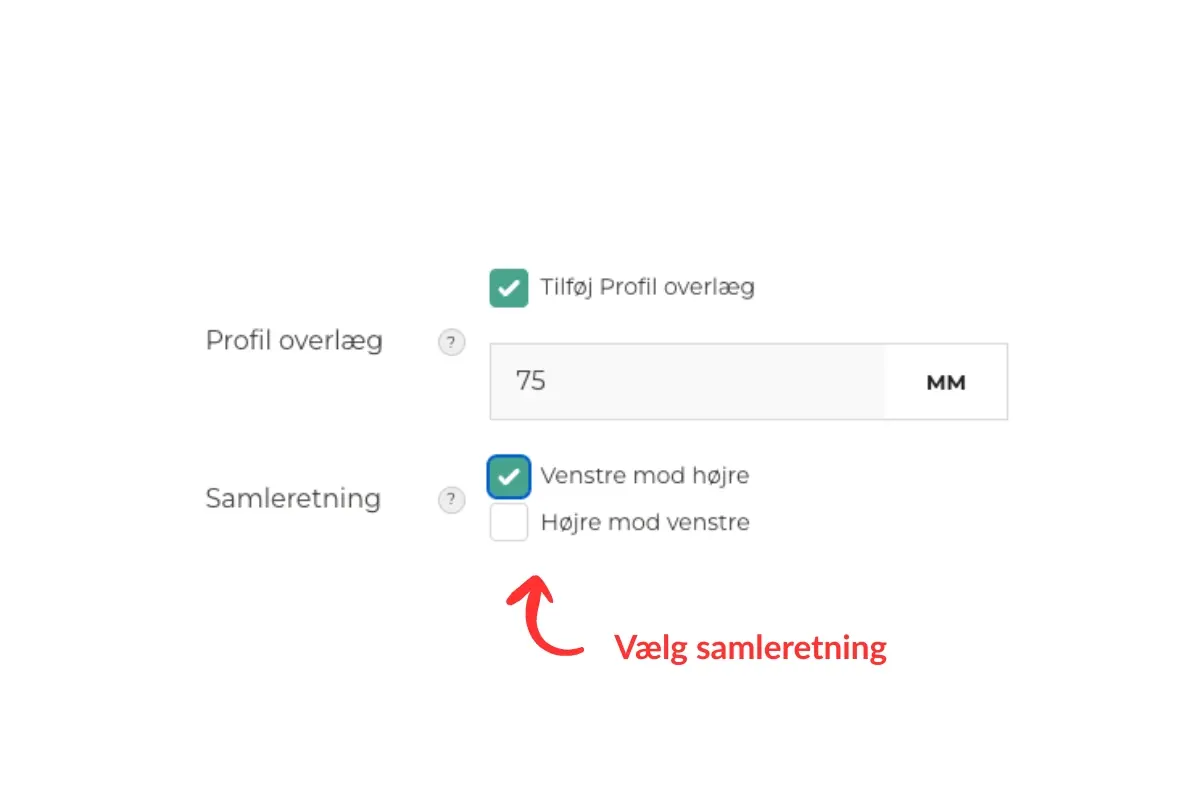 - Flere profiler: Vælg, om samlingen skal være højre mod venstre eller venstre mod højre, så den passer til vandets naturlige løberetning.